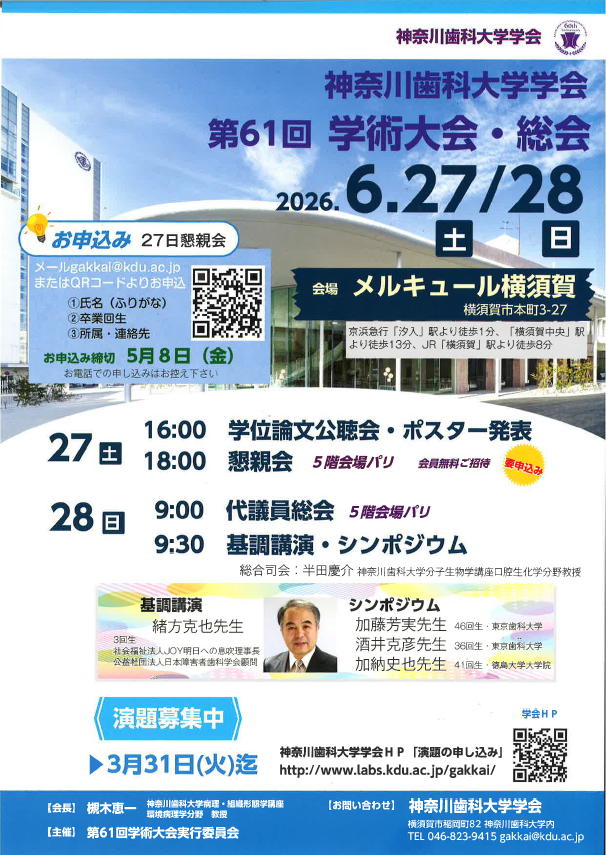 第61回学術大会演題募集・賞公募 締切:3月31日(火)